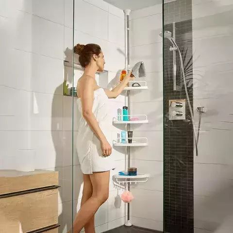Maximiza el espacio 📏: Aprovecha al máximo las esquinas de tu ducha. Este organizador te permite almacenar todos tus productos de baño sin ocupar espacio extra en la pared.